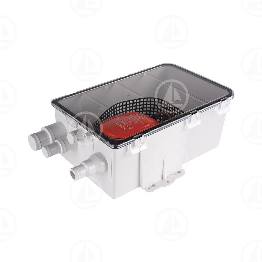 Sistema di pompa per pozzetto doccia SEAFLO 750GPH con porte di ingresso multiple. Progettato per pompare l'acqua della doccia/lavandino fuori bordo o in un serbatoio di scarico. Kit di drenaggio automatico compatto e a piena capacità. La valvola di anti ritorno sull'uscita impedisce il riflusso dell'acqua. Pompa tutto in uno, che include interruttore a galleggiante. Non è necessario alcun interruttore aggiuntivo. La pompa si accende quando il livello dell'acqua aumenta e si spegne quando l'acqua viene rimossa. KIT DOCCIA POZZETTO SEAFLO 750 GPH 24 V